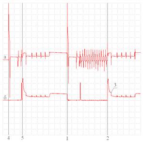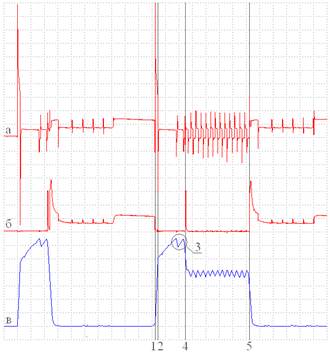 Если на осциллограммах напряжения и тока управляющего импульса видны только начало и конец управляющего импульса, а моменты открытия и закрытия иглы распылителя форсунки не прослеживаются, то можно сделать вывод о механической неисправности клапана данной форсунки.