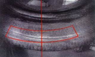 Эти два изображения оцениваются при помощи компьютерной программы и результат выводится на экран монитора в виде графического изображения шины с указанием места расположения дефектов (рис. 20.37).