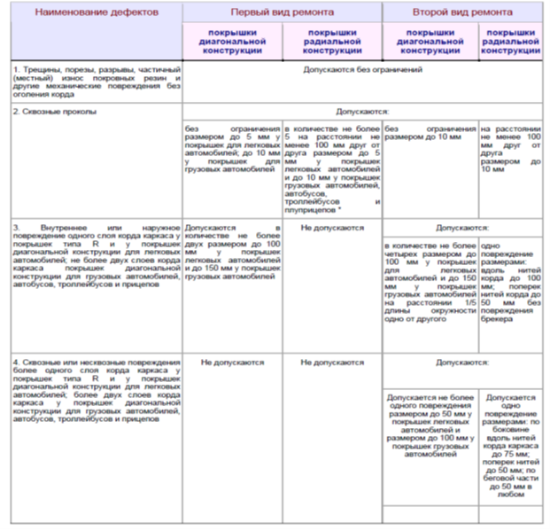 Ремонт покрышек. Ремонту местных повреждений подлежат шины, снятые с эксплуатации из-за проколов, порезов и других механических повреждений каркаса и покровных резин, если их размеры не превышают норм согласно табл. 20.1.