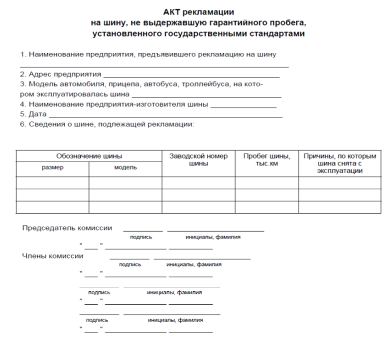 Рекламации заводам-изготовителям предъявляются в случаях обнаружения некомплектности шин; несоответствия шин ГОСТу; преждевременного износа или выхода из строя ранее установленного гарантийного пробега по производственным дефектам.