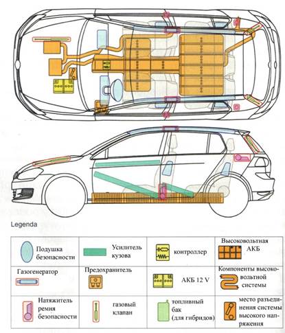 Пример такой карты показан на Подобные карты позволяют заранее знать расположение пиропатронов и других проблемных мест. «Карта спасения» — это отдельный документ на каждый автомобиль в бумажном или электронном виде, в котором присутствует и описательная часть, и визуальная схема.