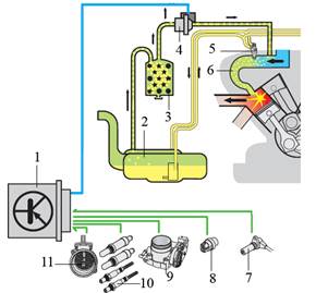 Для улавливания топливных испарений из топливного бака разработаны специальные системы, которые не ухудшают мощностных, экономических и токсических характеристик автомобилей (рис. 8.21).