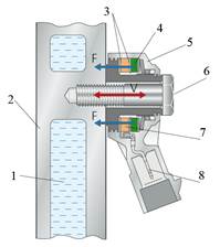 Детонация обнаруживается с помощью датчиков, основой которых чаще всего служит пьезоэлектрический преобразователь. Такой датчик представляет собой пьезокерамический элемент 7, закрепленный с помощью болта 6 на корпусе двигателя (рис. 6.16).