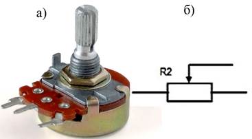 Переменный резистор называют потенциометром Потенциометр (рис.1.6) имеет прочную металлическую или пластиковую ручку, связанную с ползунком, которая позволяет отрегулировать сопротивление, после чего происходит деление переменного напряжения.